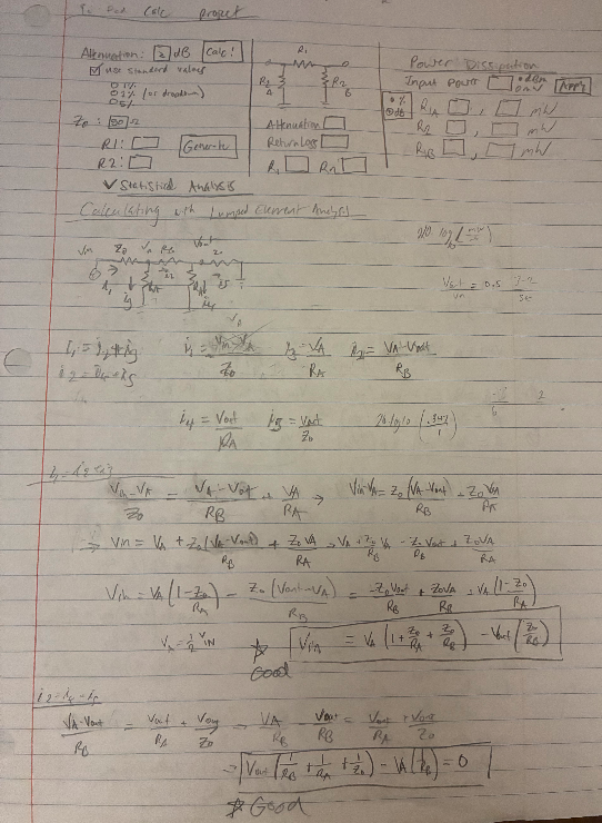 This post will cover how I solved the circuit and follow-on algebra problems for the pi-pad calculator and its resistor values. I am curious to know what the best way to solve this problem is today with modern analysis tools. Hopefully that will appear in a follow-up post soon!